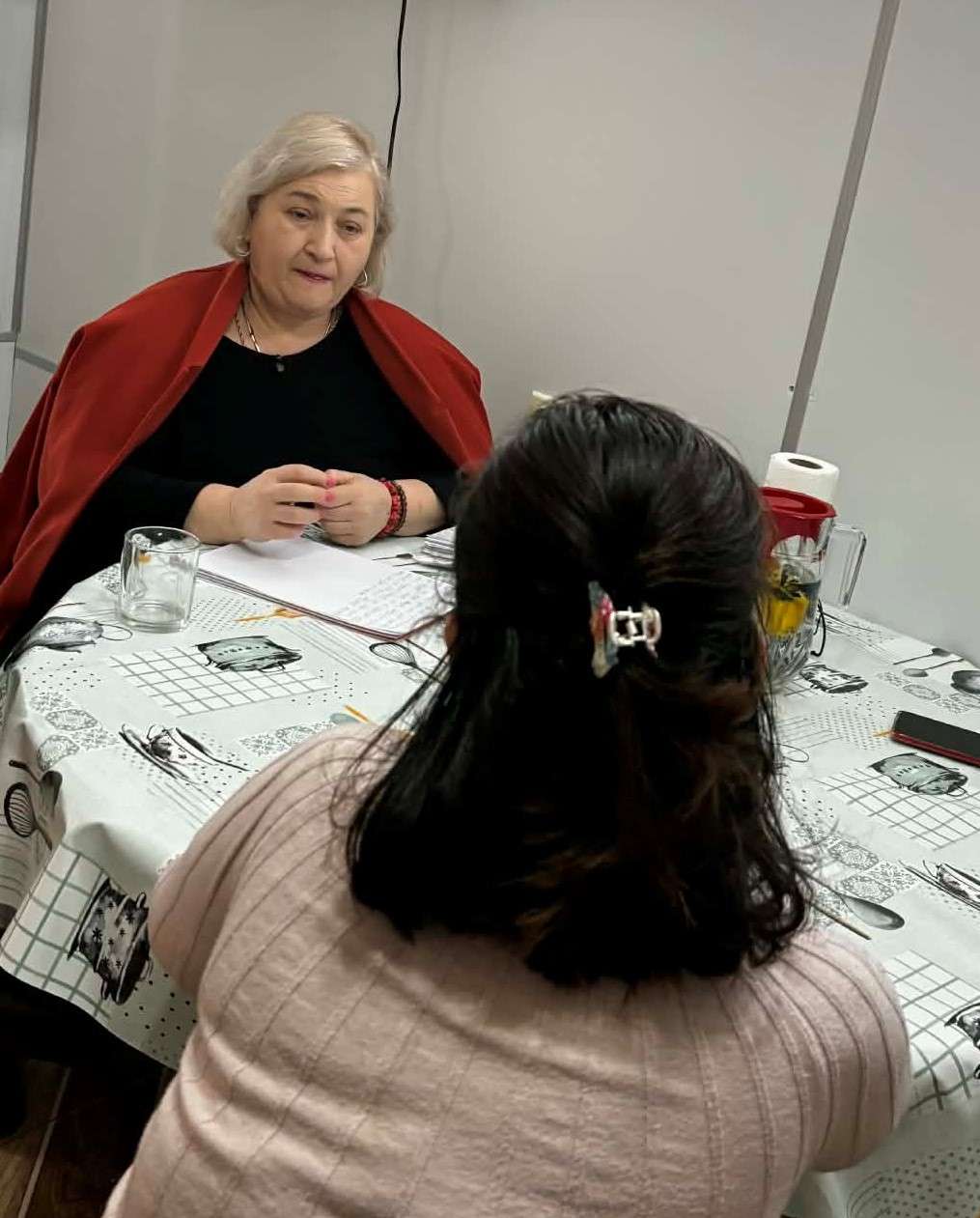 На второй фотографии координатор проекта Лела Джалагония и ассистент проекта Хатуна Гогуа разговаривают с женщинами - они более сдержанны с ними, но говорят, что им нравится быть в центре, обстановка, отношение к ним, и что дети тоже очень счастливы…