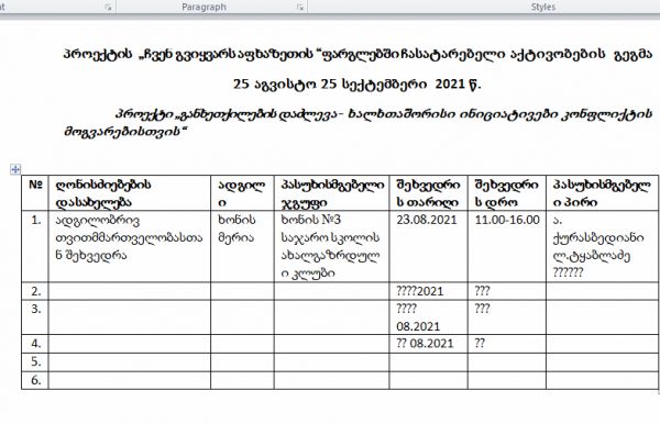 15 დეკემბერს ახალგაზრდა აქტივისტებმა ჩაატარეს შეხვედრა მოზარდებთან თემაზე: ძალადობა - ბულინგი. მონაწილეები აქტიურად ჩაერთნენ დისკუსიაში, იმსჯელეს და გააკეთეს თემატური პლაკატები.