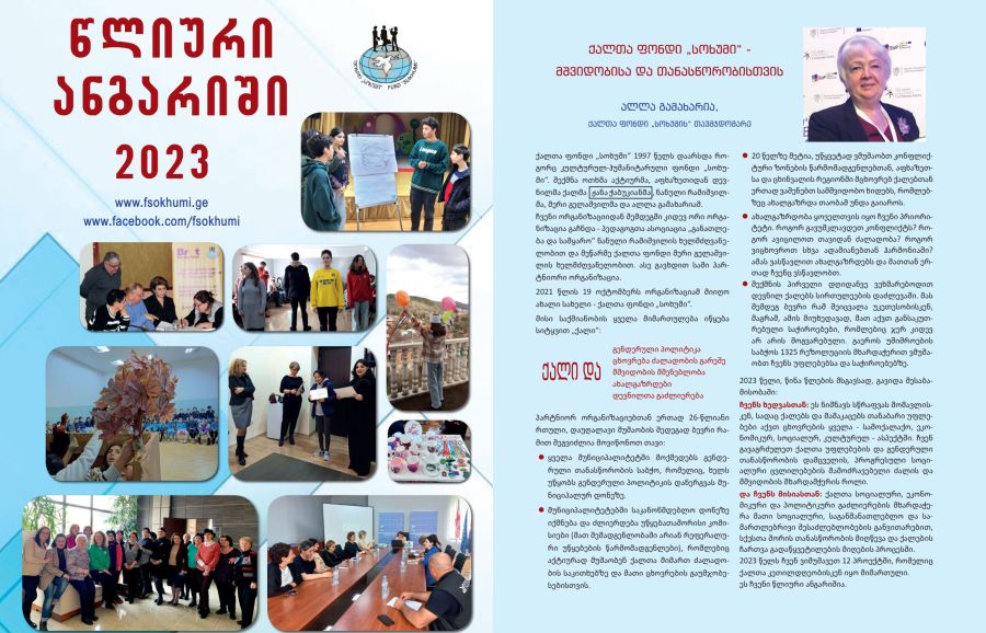 პროექტი „ქალთა ხმების გაძლიერება“ - საინფორმაციო მუშაობა საზოგადოებაში სამოქალაქო ორგანიზაციების, კერძოდ კი ქალთა ფონდი „სოხუმის“ მნიშვნელოვანი როლის შესახებ (ქალთა უფლებების დაცვის სწრაფი რეაგირების ფონდის მხარდაჭერით).