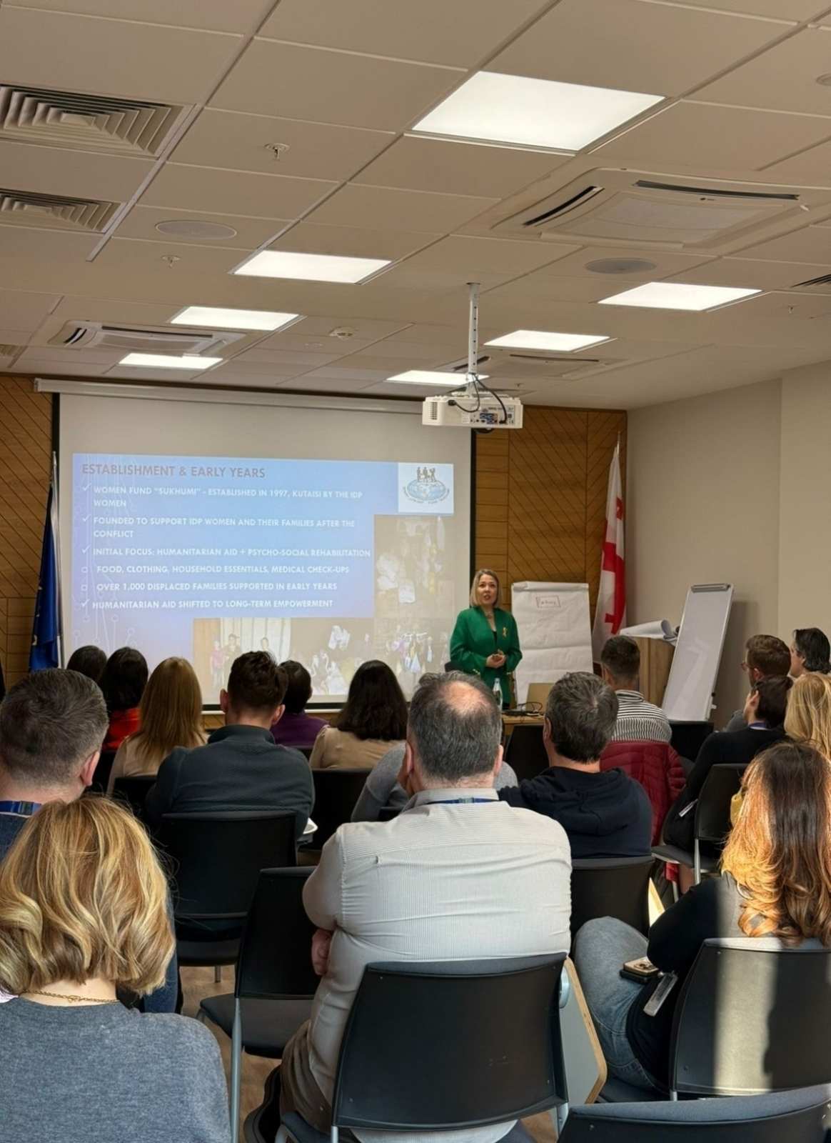 По приглашению EUMM Georgia руководитель тбилисского офиса Женского фонда «Сохуми» Екатерина Гамахария провела лекцию на тему: «Женщины, мир и безопасность на практике; человеческая безопасность и насилие в отношении женщин в постконфликтных сообществах».